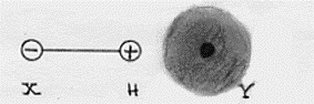 Già sappiamo che il legame idrogeno si forma prevalentemente quando X ed Y sono fortemente elettronegativi. Ciò implica che l’atomo X, impegnato nel legame, eserciterà una forte attrazione sull’elettrone dell’idrogeno. Questo elettrone passerà quindi gran parte del suo tempo delle vicinanze di X dando origine ad un legame con una polarità ben precisa: negativa dalla parte di X e positiva dalla parte di H. La situazione, schematizzata in figura, è quindi la seguente: