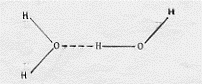 In questa struttura si hanno due atomi di ossigeno che risultano legati attraverso un solo atomo di idrogeno. Il legame dell’idrogeno con un solo atomo di ossigeno può essere considerato come covalente (vedi parte prima di questo lavoro) e, in accordo con le nostre cognizioni elementari di chimica, può essere rappresentato con un tratto continuo (————) come nella penultima figura. Riguardo l’altro legame che l’idrogeno ha con il secondo atomo di ossigeno, niente siamo ora in grado di dire relativamente alle eventuali forze in gioco: questo legame lo abbiamo indicato con una linea tratteggiata (- – – – -).