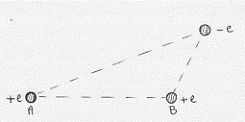 Figura 1. In figura A e B rappresentano i due protoni mentre – e rappresenta l’unico elettrone.
