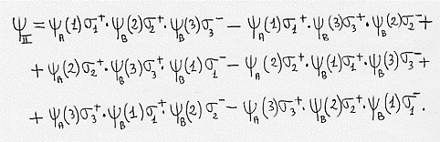 ψ’ = [ψ(1,2,3) – ψ(1,3,2)][ σ2 + . σ3 +].