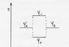 In definitiva, poiché ad energia più bassa corrisponde una più elevata stabilità, nella formazione di una molecola: o si ha un orbitale molecolare di tipo ψ+ (ai veda la figura 12), oppure gli elettroni che eventualmente ai trovassero nell’orbitale ψ– tenderebbero a tornare nella situazione di maggiore stabilità, tornerebbero cioè ai loro orbitali atomici ψA e ψB a cui compete minore energia di ψ– con conseguente non formazione della molecola. (7)