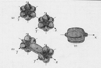 sovrapposizione degli orbitali ato mici lungo gli assi y e z.