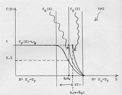 Se gli elettroni fossero classici, allo zero assoluto si troverebbero tutti nel livello energetico E = 0. Per portare questi elettroni classici dal livello E = 0 al livello, realmente occupato allo zero assoluto, EF, occorrerebbe un innalzamento di temperatura (cioè un aumento di energia) pari a circa 10.000 °K ≈ 9.750 °C ( ricordando quanto abbiamo detto sull’energia di punto zero, si può dire che gli elettroni hanno una altissima energia di punto zero e come gli elettroni tutti i fermioni).