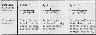 Dai grafici si può vedere subito che per la fE (E) il livello energetico E0, essendo il livello verso cui fE(E) tende (per T -> 0), è il più basso livello possibile per il sistema di bosoni costituenti il gas; per la fF(E) il livello più basso possibile per il sistema di femioni costituenti il gas è quello corrispondente ad E = 0; per la fB(E) si ha invece una situazione intermedia per il sistema di molecole costituenti il gas.