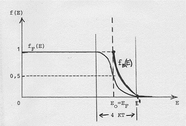 Dal livello (E*) in cui non vi sono più elettro ni, si può applicare la statistica di Boltzmann; nel grafico delle funzioni di distribuzione, infatti, il livello E* è proprio quello in cui si raccordano le funzioni di Fermi e di Boltzmann: