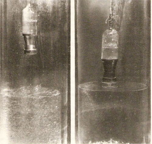 A sinistra l’elio liquido in corrispondenza della linea λ ed a destra, dopo un’ulteriore discesa della temperatura, quando si è superata tale linea (da Mendelssohn).