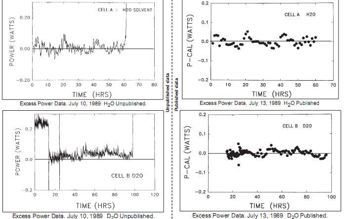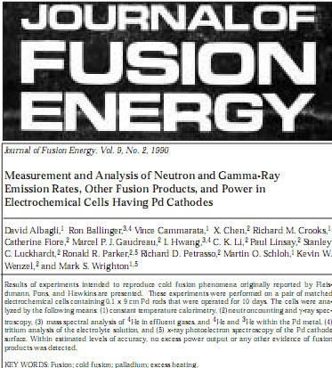 Nel 1989 Martin Fleischman e Stanley Pons riportarono in un articolo pubblicato a pagina 301 del volume 261 del “Journal of Electroanalytical Chemistry” che una notevole quantità di energia, non attribuibile ai normali meccanismi elettrochimici, si liberava in una cella elettrolitica avente un catodo di palladio e contenente una soluzione 0,1 molare di deuterossido di litio LiOD in acqua pesante D2O. Questo sovrappiù di energia ammontava a circa dieci joule per secondo (dieci watt) per centimetro cubo di palladio e veniva prodotto quando la concentrazione di deuterio nel palladio, misurata dal rapporto stechiometrico