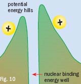 L'”ordinaria” fusione nucleare consiste, come dice la parola, nel fondere insieme due nuclei di atomi leggeri per ottenerne uno più pesante. A questa reazione si accompagna l’emissione di una enorme quantità di energia. Ad esempio, fondendo 1 Kg di idrogeno per costruire elio si liberano circa 180 milioni di Kwh di energia (mentre con la fissione di 1 Kg di uranio si ottenevano 23 milioni di Kwh di energia) dovute al fatto che la massa del nucleo finale ottenuto è minore di quella dei costituenti iniziali e, come sappiamo, ad ogni perdita di massa corrisponde l’acquisto di enormi quantità di energia. Per innescare però una reazione di fusione vi sono problemi, in gran parte tecnici, considerevoli. Infatti, mentre il tramite delle reazioni di fissione è il neutrone (particella priva di carica che per questa sua proprietà può entrare indisturbata nelle difese elettriche dell’atomo), ora è necessario che i due nuclei che debbono fondersi vengano a contatto. Ma i nuclei sono dotati di carica positiva e quindi si respingono reciprocamente con una forza che tende a diventare infinita mano a mano che la distanza tra le cariche dei nuclei tende ad annullarsi. Per riuscire ad avvicinare i due nuclei, vincendo la repulsione tra cariche elettriche dello stesso segno dovuta alla Legge di Coulomb, tanto che arrivino a fondere, occorre innalzare la temperatura a quei livelli impensabili a cui accennavo (intorno ai 100 milioni di gradi kelvin) in modo che l’agitazione termica vinca la repulsione di origine elettrica.