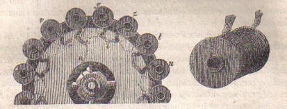 L’ albero della macchinetta elettro-magnetica portava un rocchetto Q Q (f ig. 3) il quale era abbracciato da un cordoncino che si chiudeva attorno ad una ruota assai grande e l’obbligava a girare quando la macchinetta elettro-magnetica si moveva. L’ asse di questa