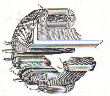 Nelle ordinarie elettro-calamite anche quando vi è adattato un commutatore sogliono i poli magnetici comparire sempre nelle medesime posizioni, mentre servendosi del commutatore che va unito alla elettro-calamita che descrivo, i poli si possono far muovere nel ferro sottoposto alla magnetizzazione. La forma del ferro di tale elettro-calamita è quella di un anello circolare. Per concepir facilmente l’andamento ed il modo d’agire della corrente magnetizzante, supponiamo che si avvolga sul nostro anello di ferro un filo di rame coperto di seta, e quando sia compita la prima spira in luogo di continuare l’elica montando sopra a quella già costruita, si chiuda il filo metallico