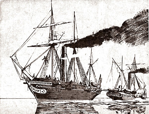 La Rattler (in primo piano) e la Alecto (mossa con ruota a pale) ambedue di 880 tonnellate.