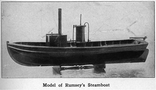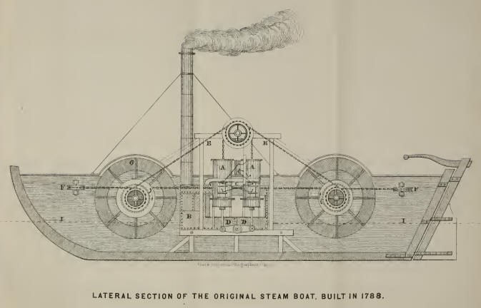 (3) Il primo brevetto USA per un battello a vapore è del 1° febbraio 1788 e fu concesso a Briggs & Longstreet. Il brevetto di Fitch fu invece contestato dall’altro inventore americano, James Rumsey (1743–1792), che il 3 dicembre 1787 varò un battello a vapore nel Rio Potomac, a Shepherdstown, località ora situata in West Virginia.