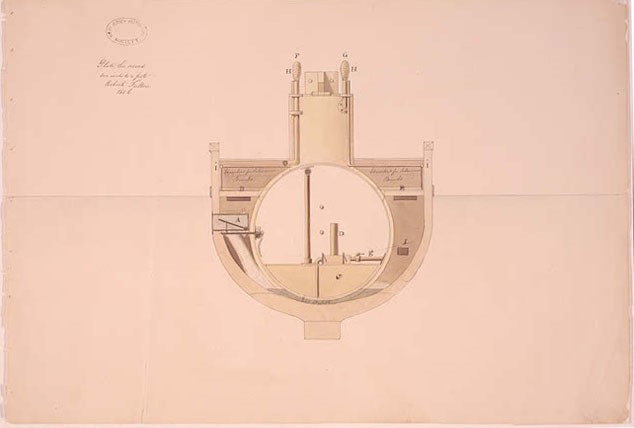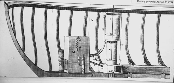 Disegno dell’interno del battello di Rumsey