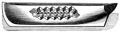 Il battello di Fitch del 1787 azionato da remi mossi con il vapore (ranked paddles). L’idea di questo sistema di propulsione venne a Fitch ispirandosi alle canoe da guerra indiane, che conobbe quando era prigioniero di guerra in Canada..