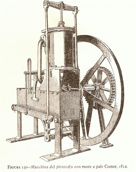 La prima nave utilizzata con successo in Europa per il trasporto passeggeri fu realizzata dall’ingegnere scozzese Henry Bell. Si tratta della Comet di 28 tonnellate (lunghezza 14 metri; larghezza 3 metri) spinta da ruote a pale per mezzo di un motore a vapore di 3 cavalli (che aveva due bilancieri situati in basso e muoventisi ai fianchi del cilindro verticale (in questo simile alla Clermont di Fulton). Entrò in servizio passeggeri lungo il fiume Clyde tra Galsgow e Greenock (istanti circa 40 Km) nel 1812.