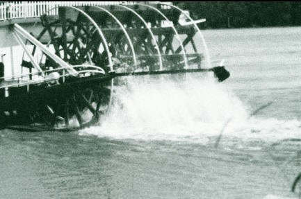 Una delle classiche navi (showboat), la J.S. De Luxe (seconda metà Ottocento), mossa con la ruota a pale laterale lungo il Mississipi
