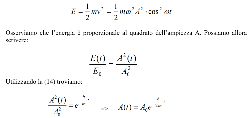 , In conclusione possiamo dire che l’energia meccanica di un oscillatore smorzato diminuisce secondo l’esponenziale incontrato, come già visto nella (14).