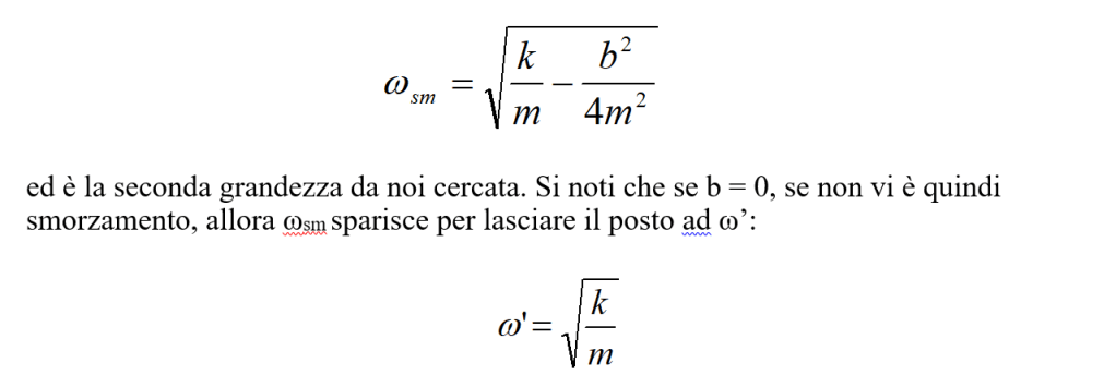 Nel caso in cui vi sia smorzamento, la soluzione dell’equazione (3) è più complicata (e noi non la svilupperemo). La soluzione è comunque quella data dalla (5’) ma con i parametri che assumono valori diversi.