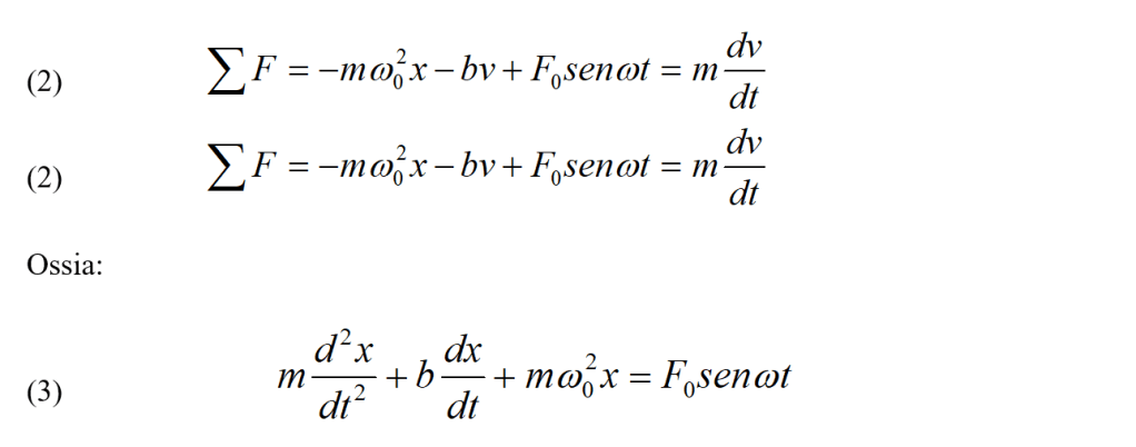 , soggetta a una forza di smorzamento – bv e a una forza esterna F0sen ωt, ubbidisce quindi all’equazione del moto data da: