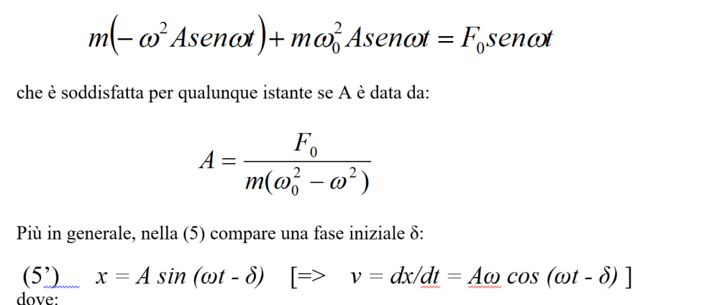 dove ω è la pulsazione della forza, che in generale non è legata alla pulsazione propria del