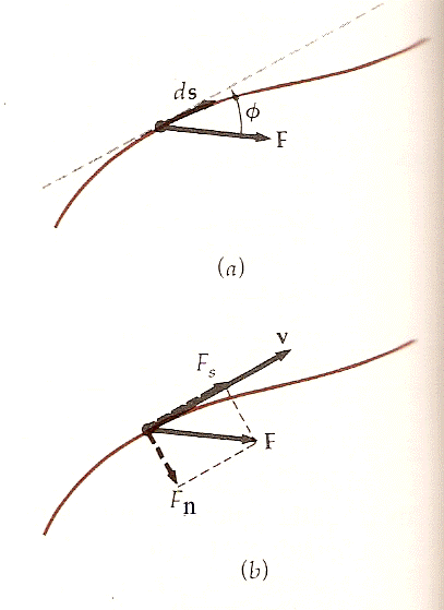 Se φ è l’angolo tra la forza F e l’elemento di spostamento ds, la componente della forza parallela a ds è Fs = F cos φ, come si può vedere dalla figura.