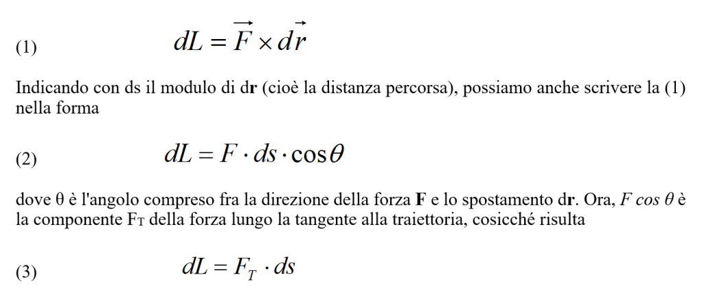 Il lavoro compiuto dalla forza F durante tale spostamento è definito dal prodotto scalare