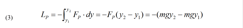 Supponiamo, come mostrato in figura (a), di avere un corpo di massa m e peso FP = mg che viene sollevato da una forza Fr(risultante di tutte le altre forze). Il sollevamento porta il centro di massa del corpo da un’altezza iniziale y1 ad una finale y2 rispetto ad un piano di riferimento (il suolo). Sia inoltre L’ il lavoro fatto da Fr. Il lavoro LP fatto dalla forza peso FP è opposto a quello fatto nello spostamento verso l’alto: