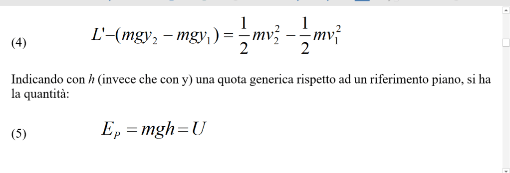 e si vede facilmente che questo risultato è identico alla relazione (1), cioè a quello trovato per un moto verticale. Ciò vuol dire che il lavoro fatto dipende solo dalle quote (posizioni) iniziali e finali, indipendentemente dalla traiettoria.