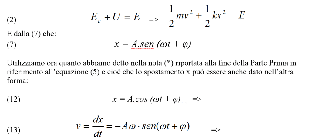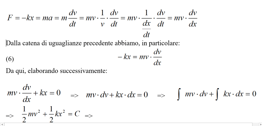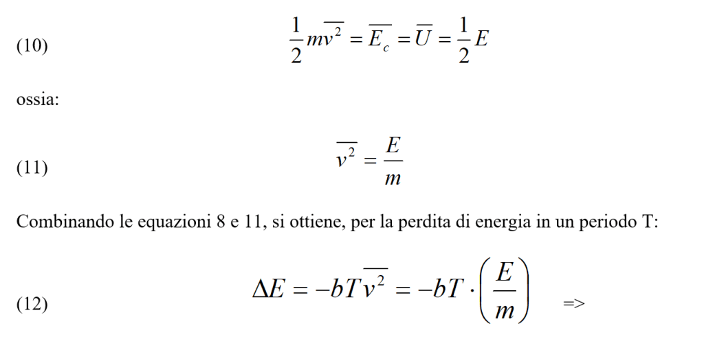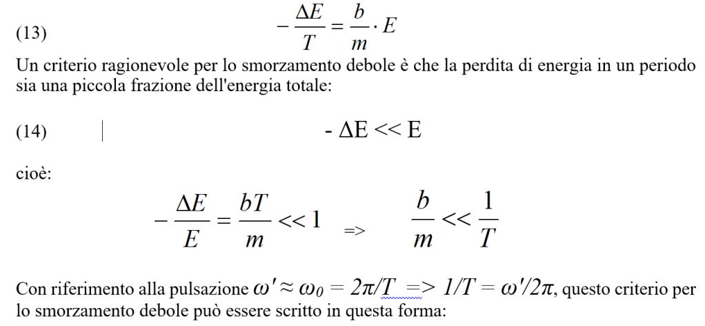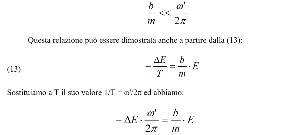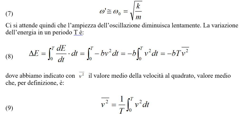 Si può quindi concludere che la rapidità di variazione dell’energia meccanica è identica alla potenza W messa in gioco dalla forza di smorzamento (si confronti la 6 con la 2).