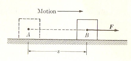 Nel linguaggio quotidiano, si dice che bisogna eseguire un lavoro per far questo: si deve esercitare una forza, che stanca i muscoli; ma nella nostra definizione scientifica, nessun lavoro è eseguito da una forza che agisce su un corpo fermo. Si potrebbe eliminare lo sforzo di sostenere il peso legando semplicemente la fune a qualche oggetto fisso, e il blocco sarebbe sostenuto senza che si debba intervenire in alcun modo. Allo stesso modo, una persona che trasposti una pesante valigia su un marciapiede orizzontale piano, non fa alcun lavoro fisico (la forza risulta perpendicolare allo spostamento)ma fatica molto. È utile considerare il lavoro, così come è stato definito, come una grandezza di cui deve essere pagato lo scotto in qualche modo. Il pagamento avviene mediante qualche tipo di perdita di energia da parte di qualunque agente che eserciti la forza. Per esempio, non si può sollevare il peso della figura a un’altezza maggiore se non si fornisce energia in una forma o in un’altra. Se si attacca un peso lievemente più grande alla fune e si solleva il peso iniziale lasciando cadere il secondo peso, si paga con la perdita di energia potenziale del secondo peso. Se si solleva semplicemente il peso con i muscoli, si paga lo scotto del lavoro eseguito con la perdita di energia chimica interna del corpo. Per continuare a eseguire lavoro con i muscoli, si deve finire per ripristinare questa energia con l’assunzione di nutrimento. Se si attacca la fune a un motore elettrico per sollevare il peso, si spende energia elettrica per eseguire questo lavoro.