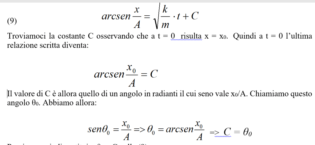 e poiché A sen (ωt + θ0) = 0, si avrà:
