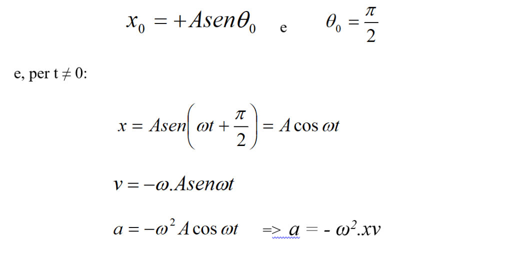 Se poniamo t = 0 quando l’oscillazione si trova nel suo punto centrale o quando si trova agli estremi della sua traiettoria, le equazioni scritte assumono una forma più semplice.