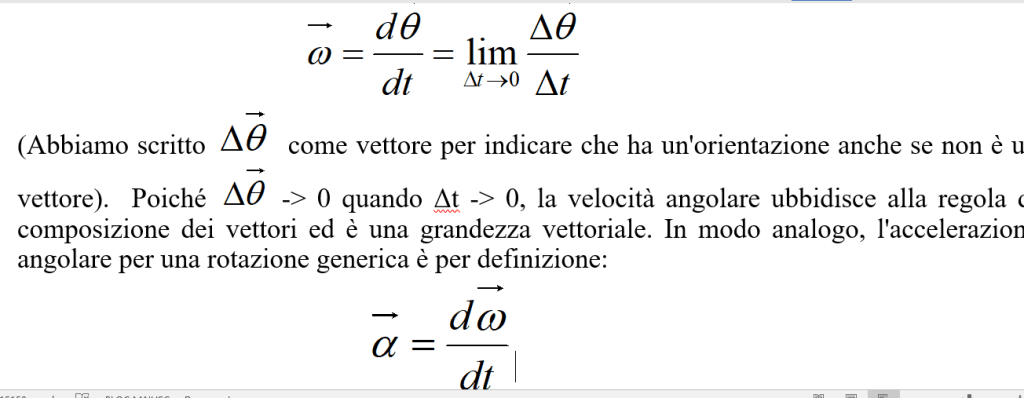 dove ω0 è la velocità angolare nell’istante t = 0.