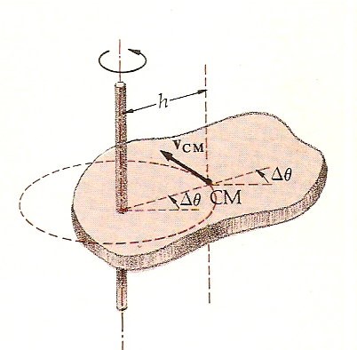 Confrontando questa espressione con quella per l’energia cinetica di traslazione di una singola particella, ½ mv2, si vede che nel moto rotatorio il momento d’inerzia è analogo alla massa nel moto lineare, così come la velocità angolare è analoga alla velocità lineare. Si rilevi che nell’equazione (11) la distanza ri è la distanza fra la particella i-esima e l’asse di rotazione. In generale non è la distanza fra la particella i-esima e il centro di massa anche se in una figura bidimensionale rotante intorno a un asse perpendicolare alla figura e passante per il centro di massa le due distanze coincidono.