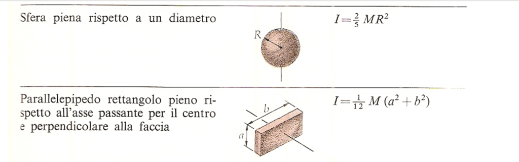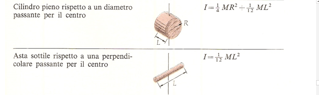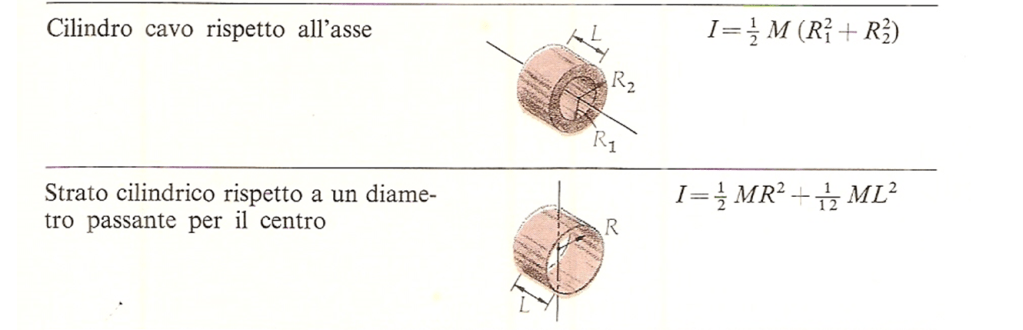 Di seguito riporto i momenti d’inerzia di corpi uniformi di varie forme.