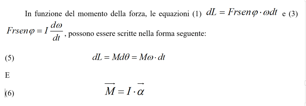 dove dω/dt  è l’accelerazione angolare ed I è il momento d’inerzia. La (4) si può anche scrivere nel modo già visto:
