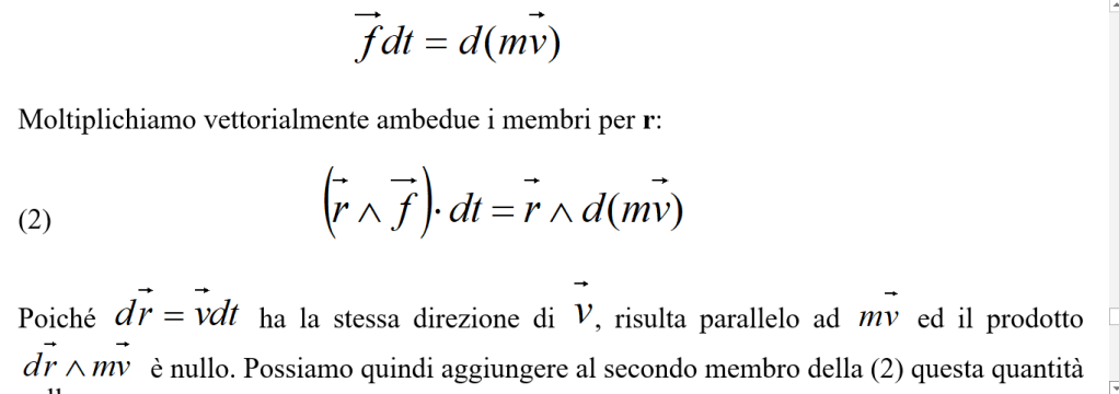 Riscrivo qui cose scritte quando abbiamo trattato il momento di una forza ed il momento angolare.
