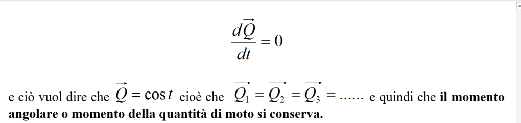 Si osservi che se il momento delle forze esterne agenti sul sistema è nullo, risulta: