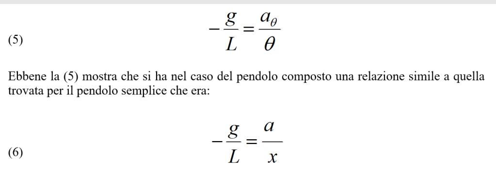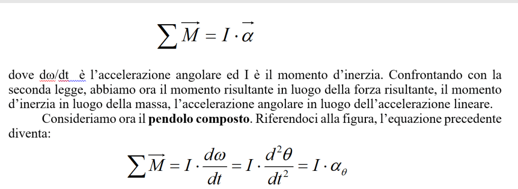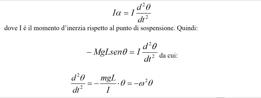 Quindi il pendolo composto si muove di moto armonico semplice e, sempre nell’ipotesi sen θ ≈ θ, si ha: