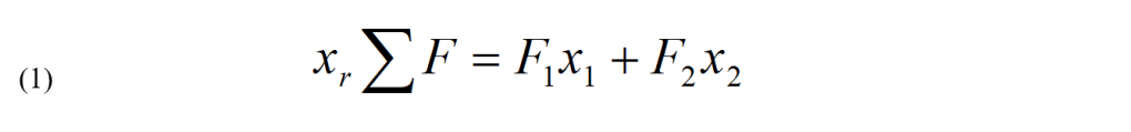 Perché quest’unica forza abbia lo stesso effetto sulla rotazione, si deve scegliere il punto di applicazione in modo che il momento della forza che essa esercita rispetto a qualunque punto sia uguale alla somma dei momenti esercitati dalle due forze iniziali. Siano x1 ed x2 i bracci delle forze iniziali rispetto al punto O. La forza risultante Σ F produrrà lo stesso momento rispetto a O se è applicata a una distanza data da: