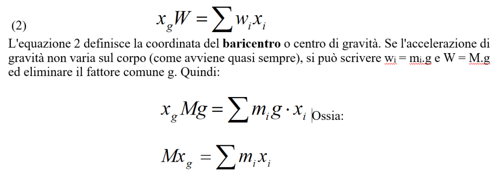 Generalizzando l’equazione (1) al caso di più forze concordi e usando la relazione Σ F = W, si ha, per il punto di applicazione xg della forza risultante: