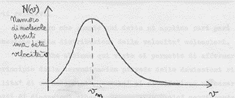 ad ogni istante si avrà un numero enorme di valori di v; poche molecole avranno velocità molto piccole (la coda sinistra della gaussiana); poche molecole avranno velocità molto grandi (la coda destra della gaussiana); un grandissimo numero avrà velocità intermedie; la curva presenta un massimo in corrispondenza di vm che può essere assunta come la velocità più probabile delle molecole.