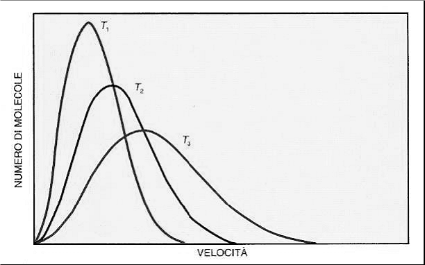 Le velocità delle molecole, in definitiva, si distribuiscono secondo la curva mostrata in figura (una gaussiana). Questa curva ha il seguente significato: le molecole del gas sono in continuo movimento e soggette agli urti più svariati (tra di esse e con le pareti del recipiente che le contiene);