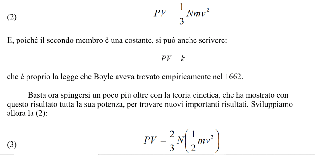Si vede subito che al primo membro abbiamo il prodotto PV pressione per volume del gas. Al secondo membro abbiamo una quantità che, se fosse costante, ci darebbe la legge che Boyle aveva trovato sperimentalmente. Ora su Nm/3 non vi sono dubbi (Nm rappresenta la massa totale del gas). Il problema si pone per v2 e la cosa era presente a Daniel.