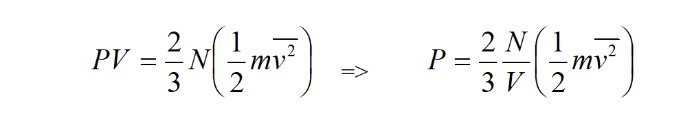 In definitiva, quell’atomo che rimbalza su quella superficie del cubo gli trasmette, nel tempo dato, una forza data dalla relazione precedente. Poiché poi questa forza la si esercita su una superficie (S = d2), si avrà a che fare con una pressione che è proprio il rapporto tra forza e superficie (P = F/S):