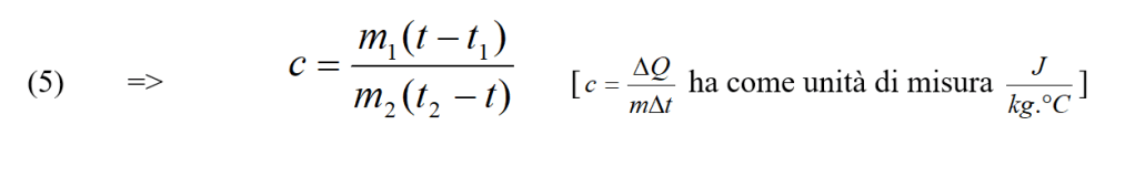 La quantità c è chiamata calore specifico del rame (rispetto all’acqua presa come riferimento) e, più in generale, della sostanza in considerazione. Si può determinare c misurando m1, m2, t1, t2.