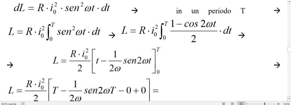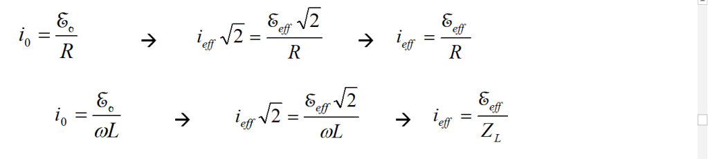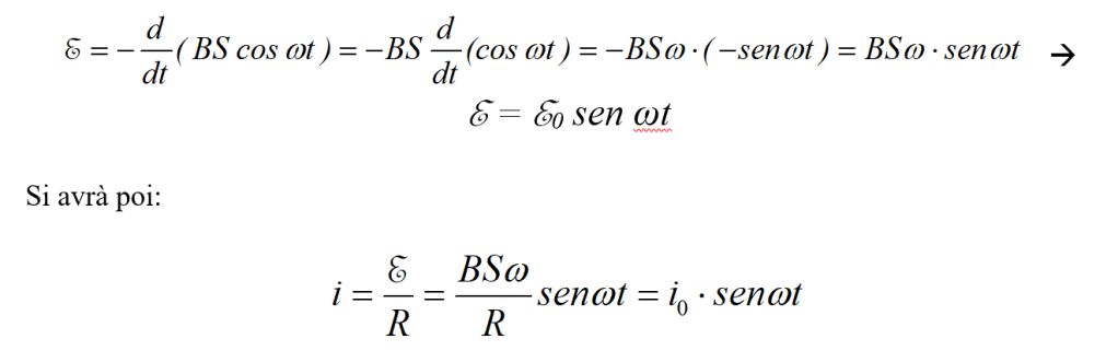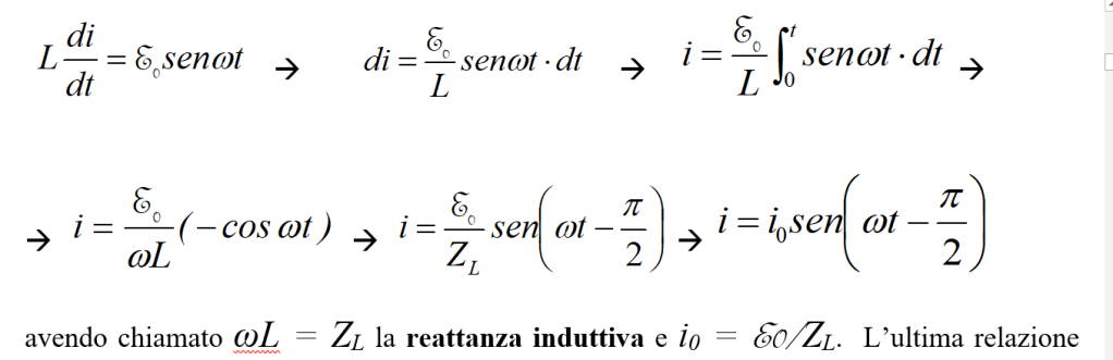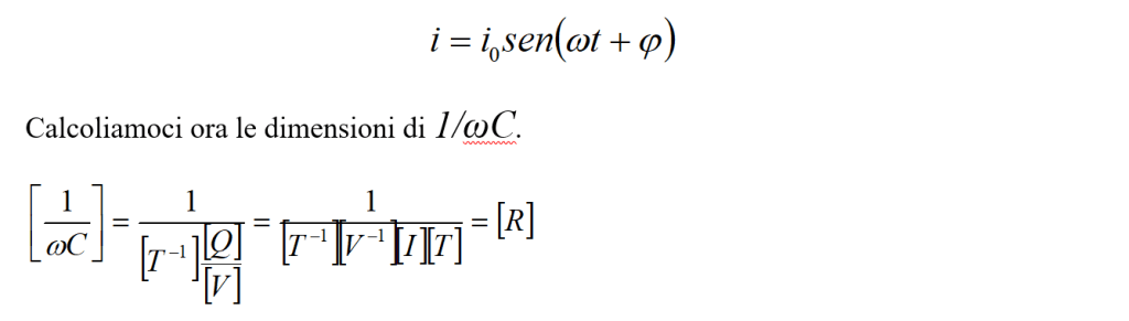 Poiché poi vale la , anche la corrente sarà una funzione sinusoidale del tempo.
