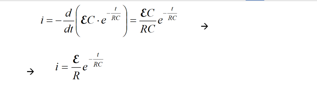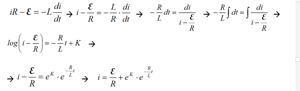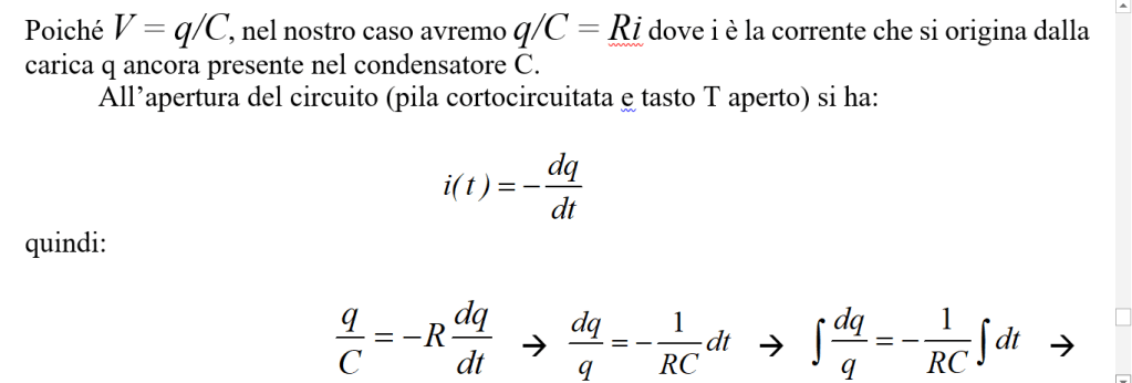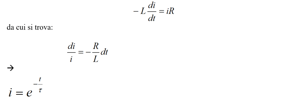 con la differenza che, questa volta, all’istante dell’apertura di T, la differenza di potenziale della pila si annulla (V = 0). L’espressione precedente diventa allora: