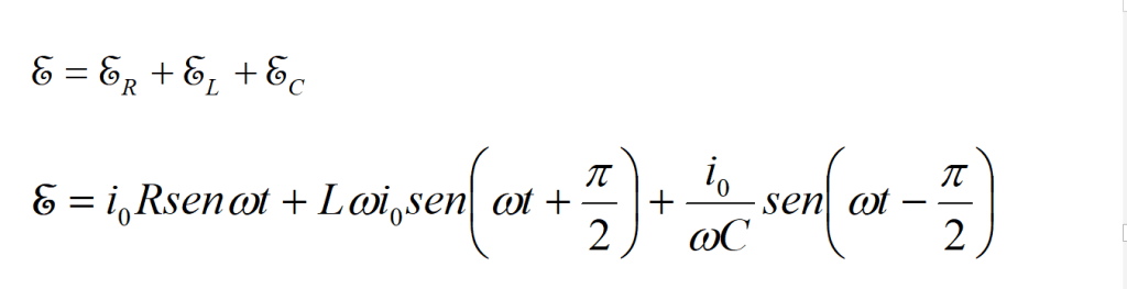 In questo caso, il valore istantaneo della corrente i è dato da (ricordiamo la relazione che lega carica a tensione in un condensatore Q = CV che nel nostro caso è Q = CE = CE0 senωt):