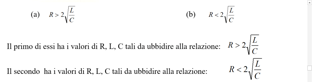 Il primo di essi ha i valori di R, L, C tali da ubbidire alla relazione: